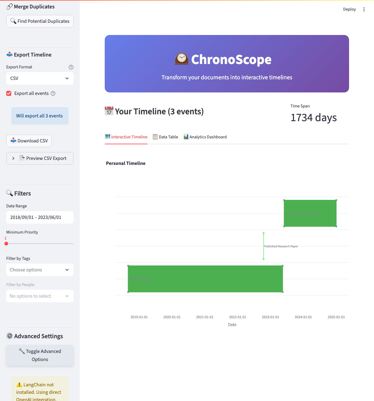 Step 3: Explore Your Timeline (2 minutes)¶